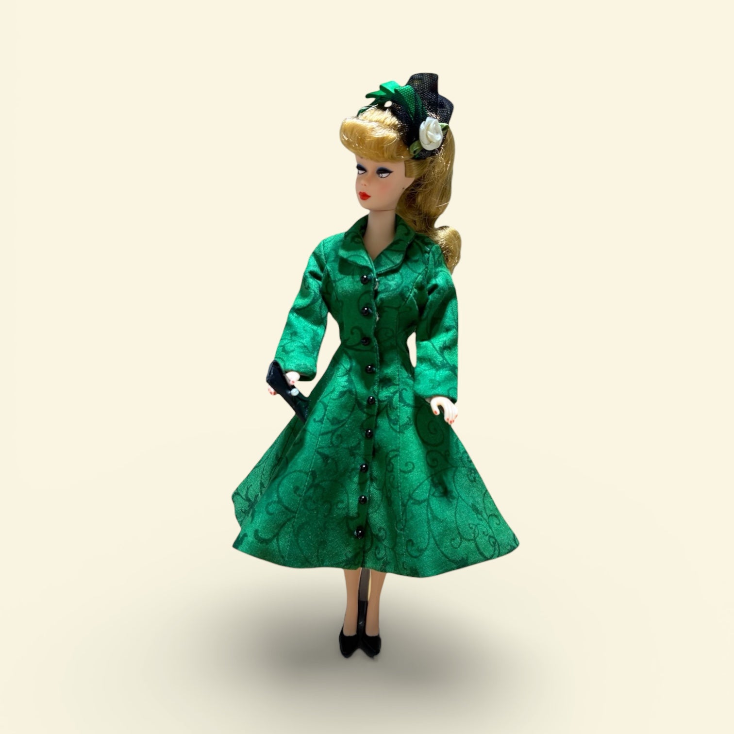 Your doll is sure to be a standout in a fully lined custom made coat dress! Dress includes hat, shoes and purse. Pictured are two examples. Please email me to let me know what kind of fabric you would like for your coat dress! Please allow up to 8 weeks for delivery.